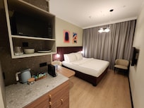 I do want to say the hotel is nice and clean and comfortable. If it wasn't for the above experience I would have given it a better score. I'm not against self serve - if only they had clarify it during booking or in the confirmation email, so that I was prepared. It does justify the price considering the quality of the room. The kitchen ware and microwave are very useful. I did also come across a much nicer staff two days later. She was cleaning another room, and I asked her a simple question and she was very nice and helpful.
