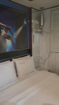 At first when we arrived, we did think the picture frame on top of our bed was a bit weird, I don't really know if this is considered a love hotel haha but it didn't really matter to us you dont really pay much attention to it. All the staff at the front desk were so nice and very helpful! They always greeted us as we left the hotel as well as when we got back. They even let us borrow umbrellas when it was raining, so nice! The room was spacious enough for my sister and I, we're both small so the basic room was just right for us. They had someone clean the room everyday which was very nice when you get back after having a long day. The shower was nice as well, very clean. The area where you sleep is also really quiet you don't hear noise from cars or anything. Since this hotel is in between an alley there are people smoking at day and night so I wouldn't recommend for children to stay. This hotel is super convenient when getting on the subway in less than 5 minutes. It does take some time to get to main areas but honestly it wasn't that bad time goes quickly and the subway is very efficient. The limousine bus is also a perk when it comes to this hotel. You get dropped off close to exit 3 of the subway and then going back to incheon airport is exit 2 of the subway so it was super convenient. There was plenty of convenience stores, cafes, pharmacies, food places around the area which was really good. I would totally recommend this place and would love to stay here again!