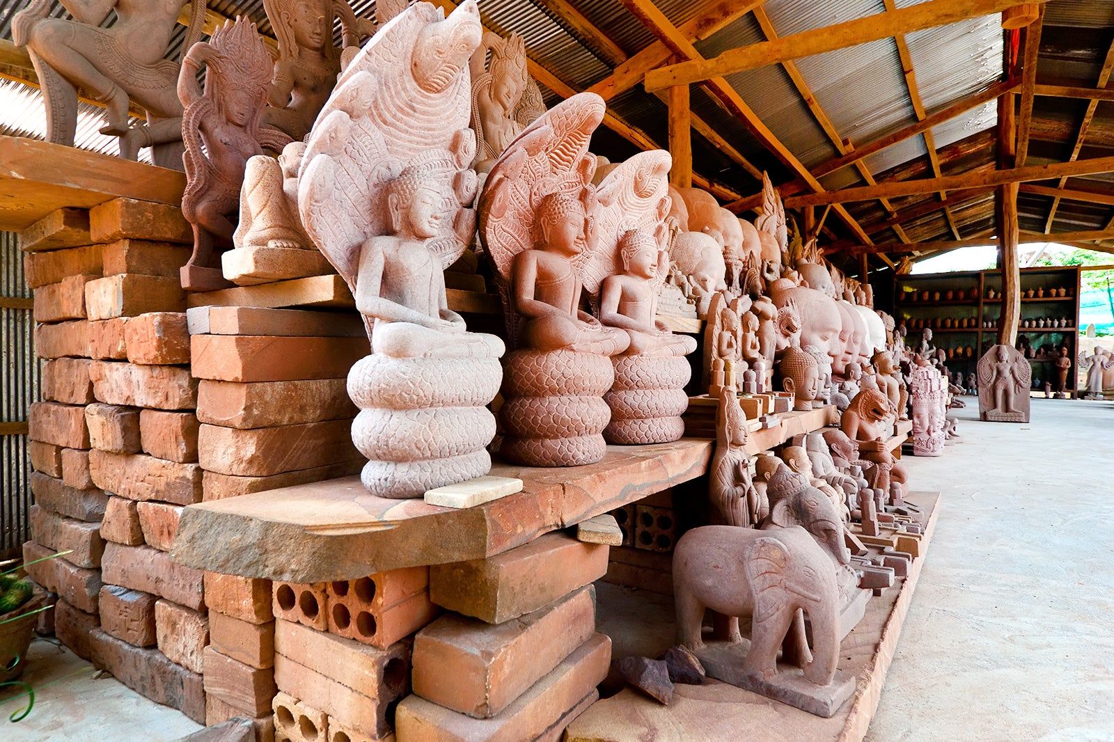 Cambodia has excellent reproductions and copies available at reasonable prices. The intrinsic skill of craftsmen – using the same locally mined stone used to build the ancient temples – produces sculptures of such quality that, with artificially induced weathering, have even fooled some experts.
