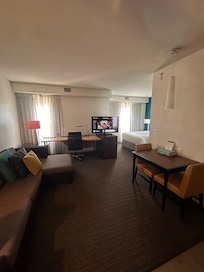 We had a 2 bedroom family suite, which had 2 bathrooms and was an amazing size with full kitchen. Would have been nice to have a baking pan to put things on into the oven. Called front desk, no baking pans. We stayed 8 nights. Overall, nice hotel. Pool was smaller than expected based on pictures and was not heated as advertised. Breakfast was better than average but some wider variance in items definitely would have been nice. The same scrambled eggs, sausage and waffles daily could have been better to switch up to bacon, omelets and pancakes here and there. Some parts of the hotel look tired and could use to be updated. Breakfast most days was extremely busy and if you didn't get there by 730, it was hard to find a seat. A large amount of staff couldn't speak english so asking questions was hard and they had to use google translate.