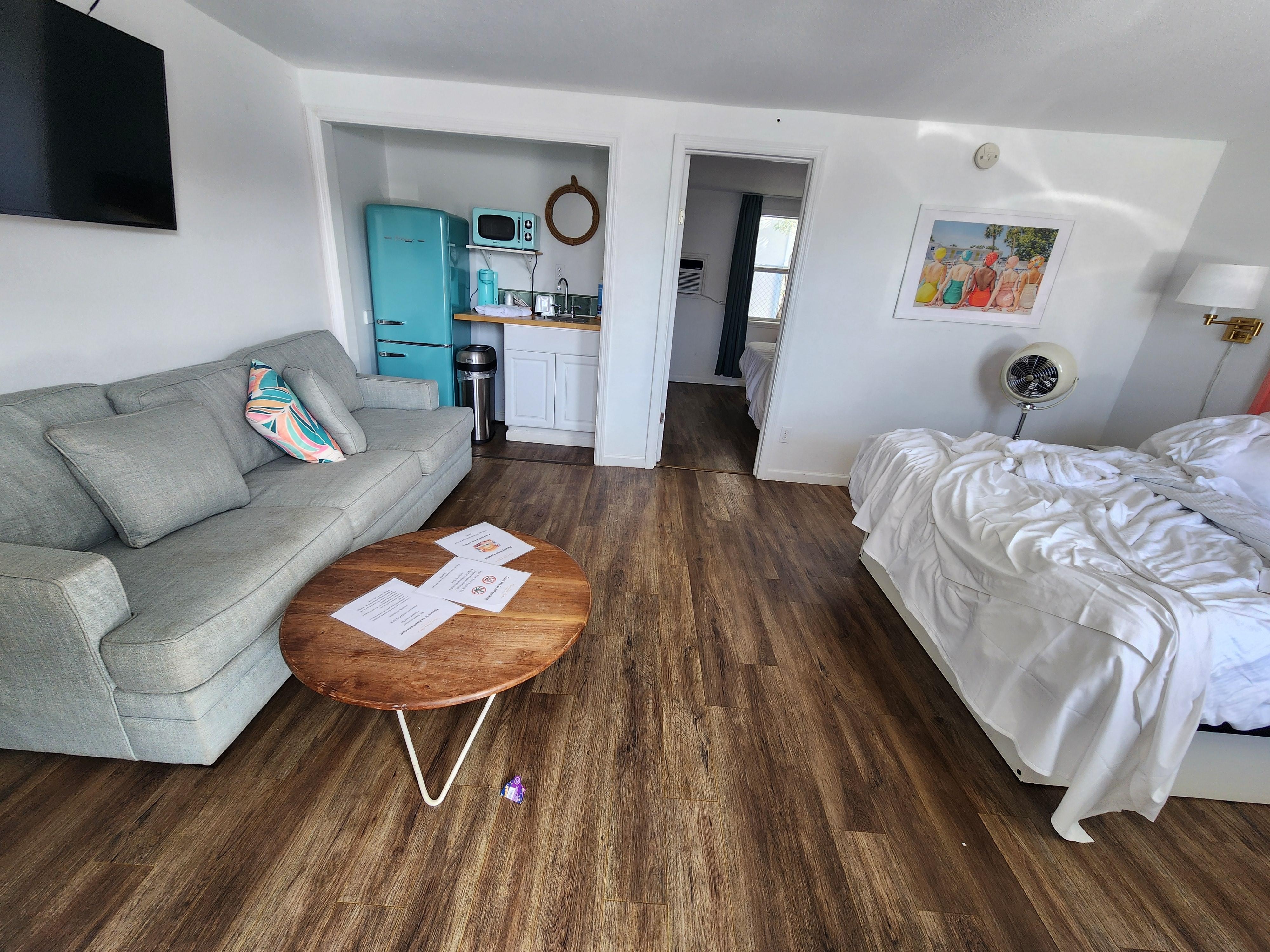 Check in was good, the room was clean. Location is decent, easy to walk to the beach and to downtown/pier. Good restaurants around, there is also a grocery store within a short walk.