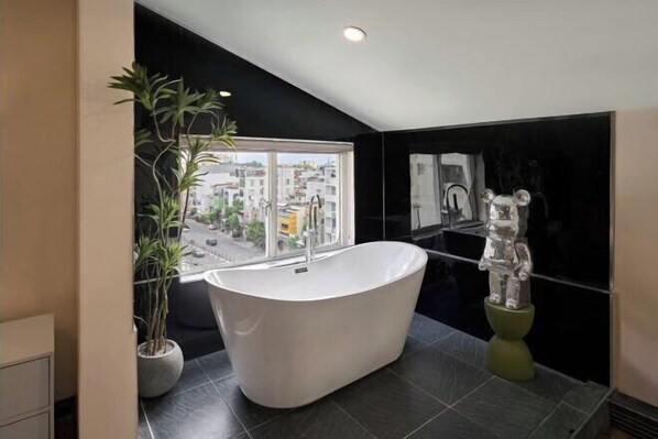 Skyview Room With Bathtub, Window, And King Bed