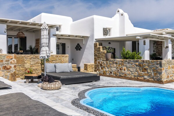 Vila ini berjarak 15 menit berkendara dari Bandar Tua Mykonos dan Bandar Baru Mykonos. Fasilitas kolam renang outdoor musiman dan taman adalah keunggulan lainnya.
