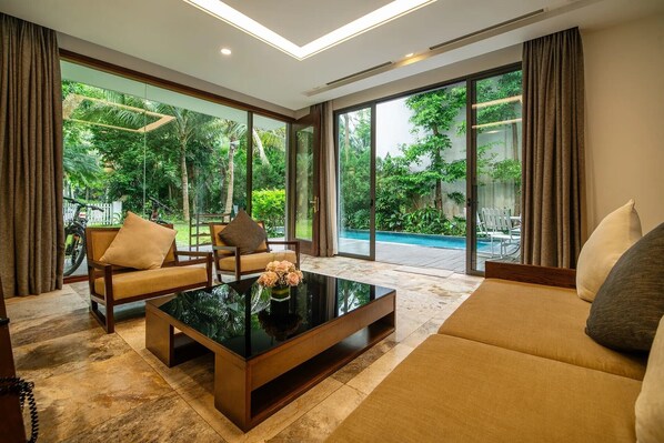 Ya, setiap kamar dilengkapi dengan balkon atau patio dan halaman pribadi.
