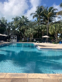 The property was very nice, with a lot of amenities: 2 pools, 3 bars, an exercise room, outdoor lawn games such as jumbo chess, shuffleboard, bean bag toss, and foosball. The front desk was very friendly and helpful.