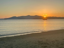 Plage à côté de sable fin. Avec possibilités de location de transats à la journée (les prix varient de 10 à 50€ en fonction de la saison).